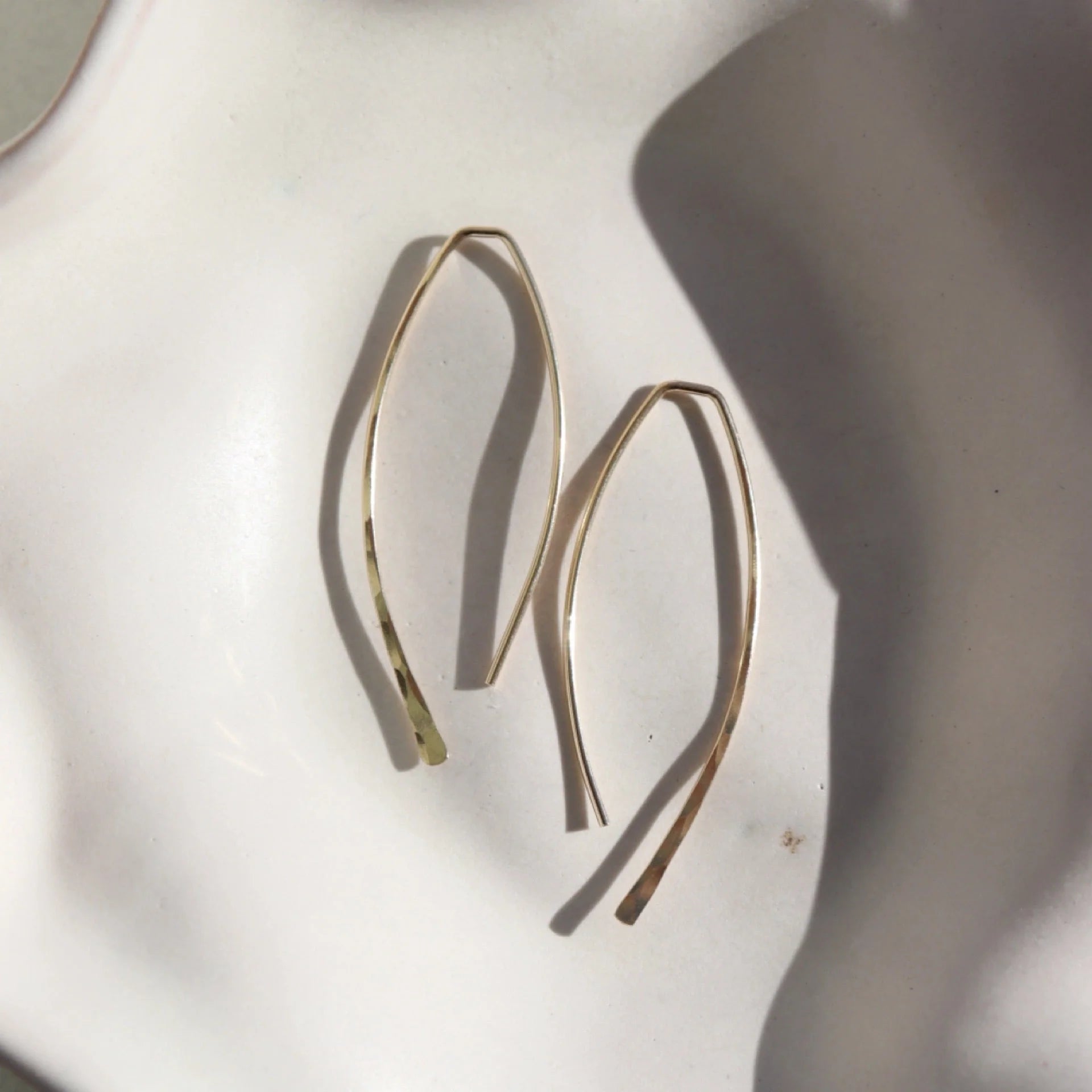 This oh-so-light-weight earring scores major points for versatility and everyday wear. Each earring is lightly hammered to a beautiful shine. Please allow for natural variations that may occur.